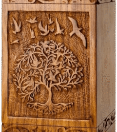 Discover a memorial that speaks of a life well-lived and a spirit deeply rooted. This exquisite wooden cremation urn celebrates the organic beauty of nature, featuring a captivating natural wood grain and a prominent, symbolic wood knot at its heart.